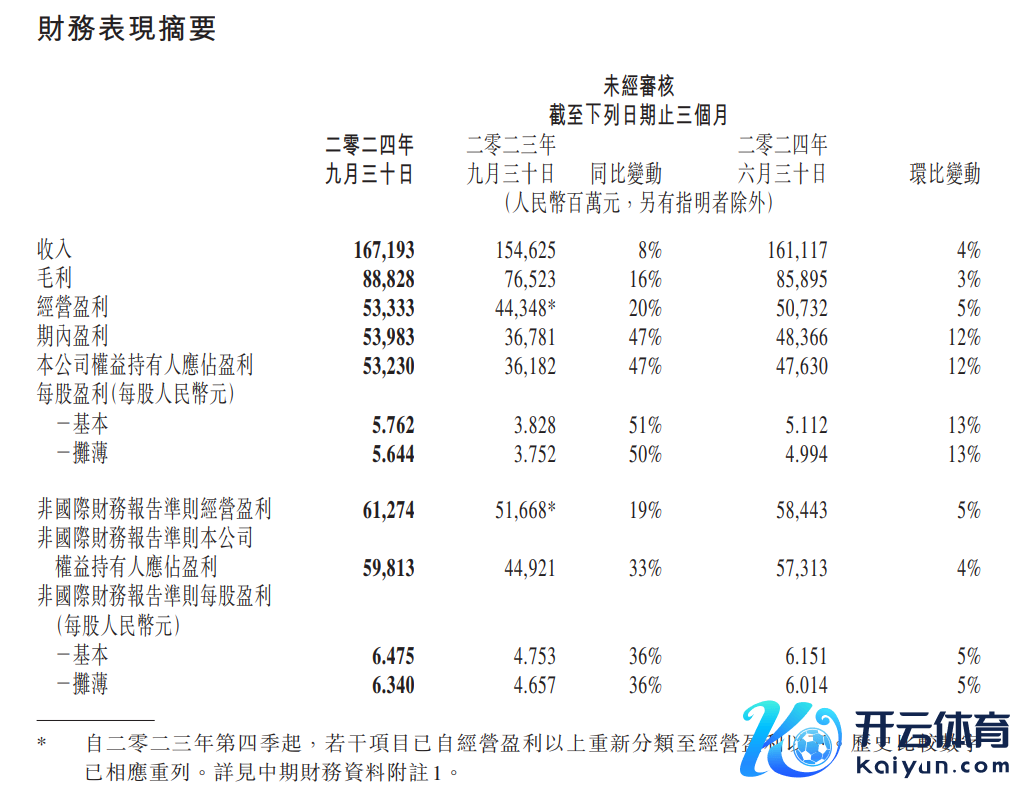 11月13日,腾讯控股(00700.HK)发布2024年第三季度财报,当季腾讯营收1671.93亿元,同比增长8%。毛利与筹备利润(Non-IFRS)分裂为888.28亿元和612.74亿元,同比增长16%和19%,辘集8个季度杰出营收增速,无间高质料发展态势。