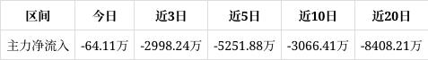 本日主力净流入-64.11万,占比0%,行业排行9/22,归并3日被主力资金减仓;所属行业主力净流入7245.51万,刻下无归并增减仓闲静,主力趋势不显着。