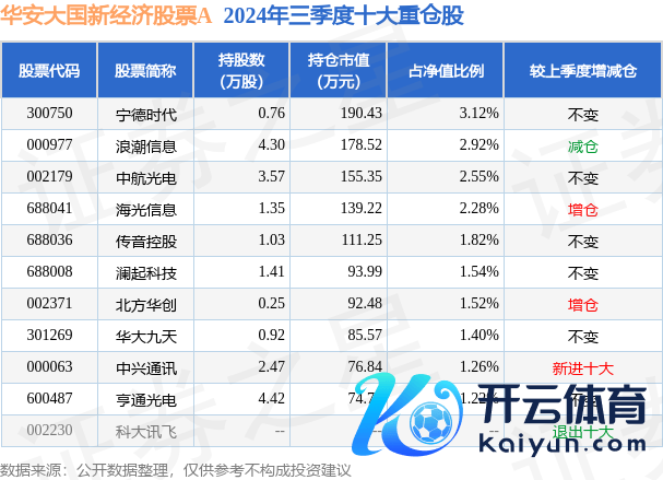 华安大国新经济股票A为股票型基金,笔据最新一期基金季报败露,该基金钞票成就:股票占净值比94.86%,债券占净值比0.33%,现款占净值比4.83%。基金十大重仓股如下: