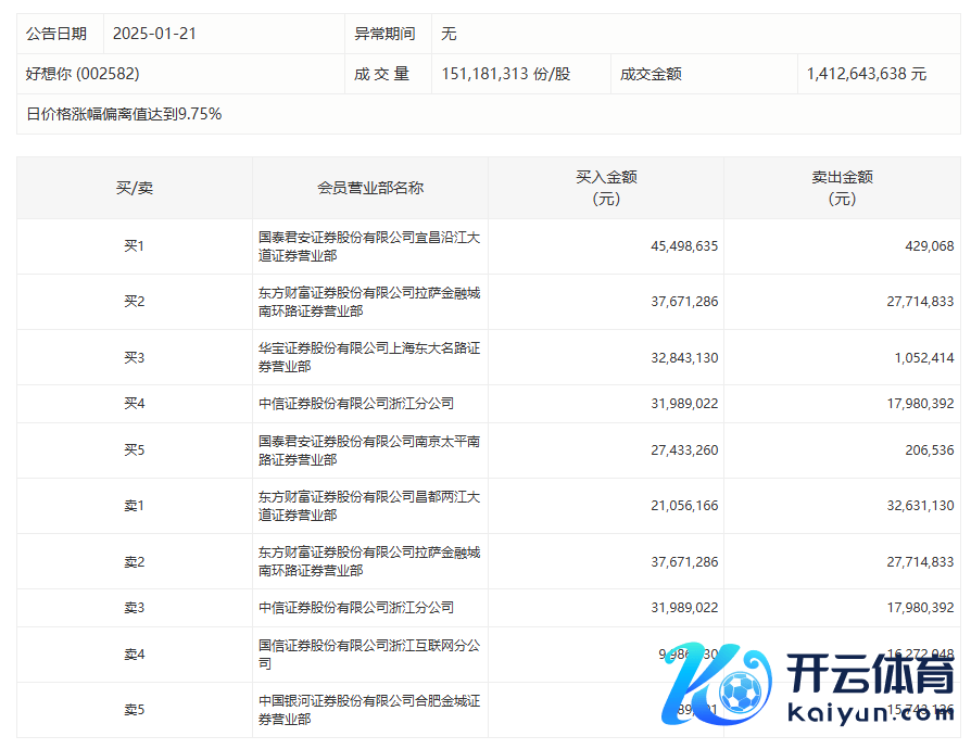 好念念你1月21日涨停,龙虎榜数据显现,上榜贸易部席位全天成交3.19亿元,占当日总成交金额比例为22.58%。其中,买入金额为2.07亿元,卖出金额为1.12亿元,共计净买入9493.78万元。